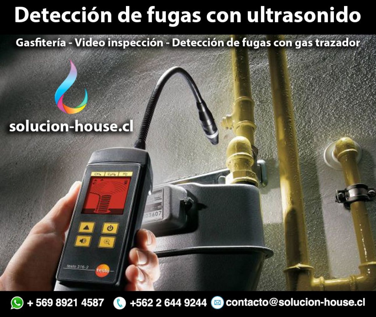 Ofrecemos el servicio de gasfitería en general, instalaciones sanitarias, detección de filtraciones de agua con equipos de ultra sonido, gas trazador, termo grafía, reparación de filtraciones de agua en todos los materiales y medidas, destapes en general, alcantarillados, artefactos, piletas, colectores, verticales y horizontales de edificios, tenemos el servicio de ductoscopia (video inspección). Reparación y mantención de sistemas de calefacción, calderas.